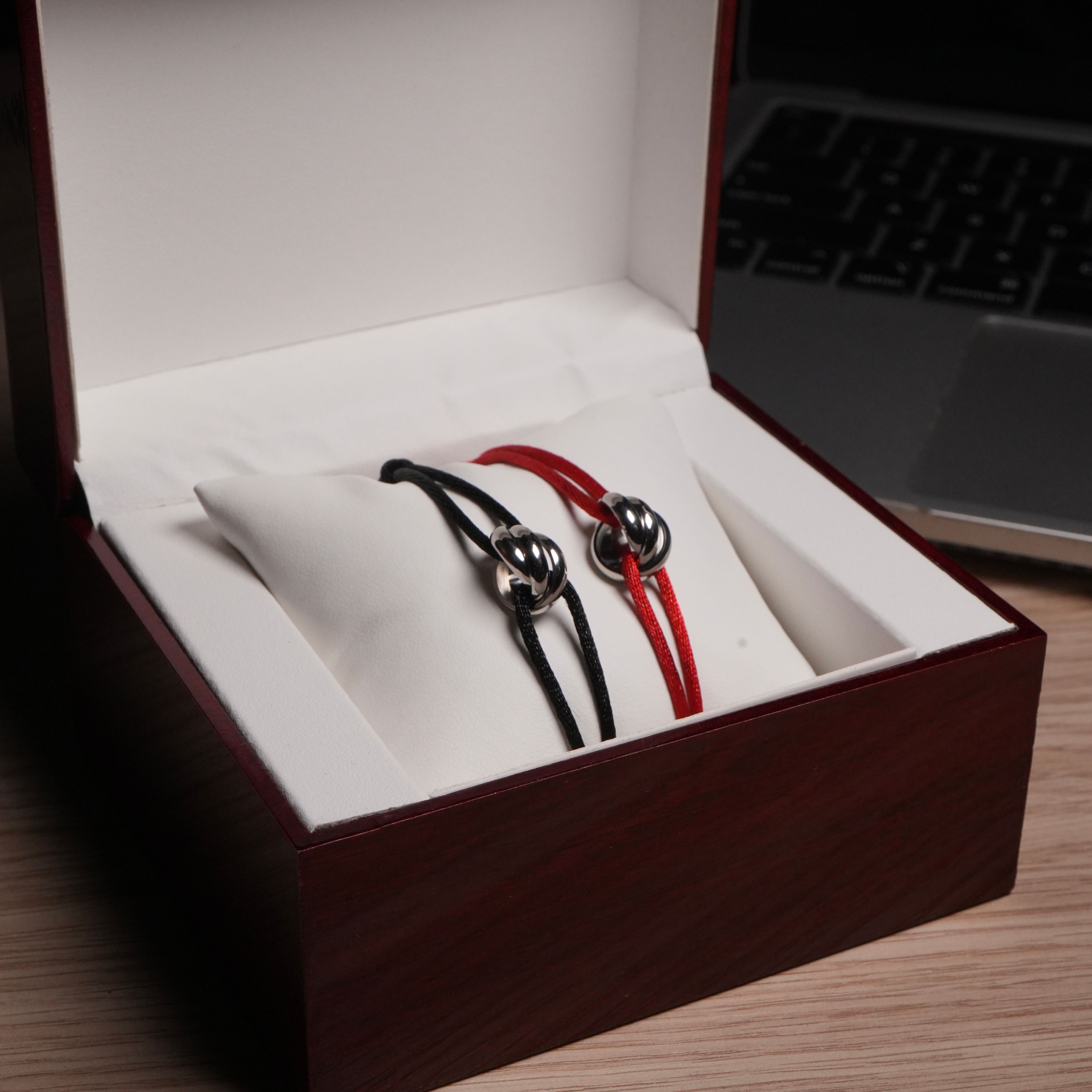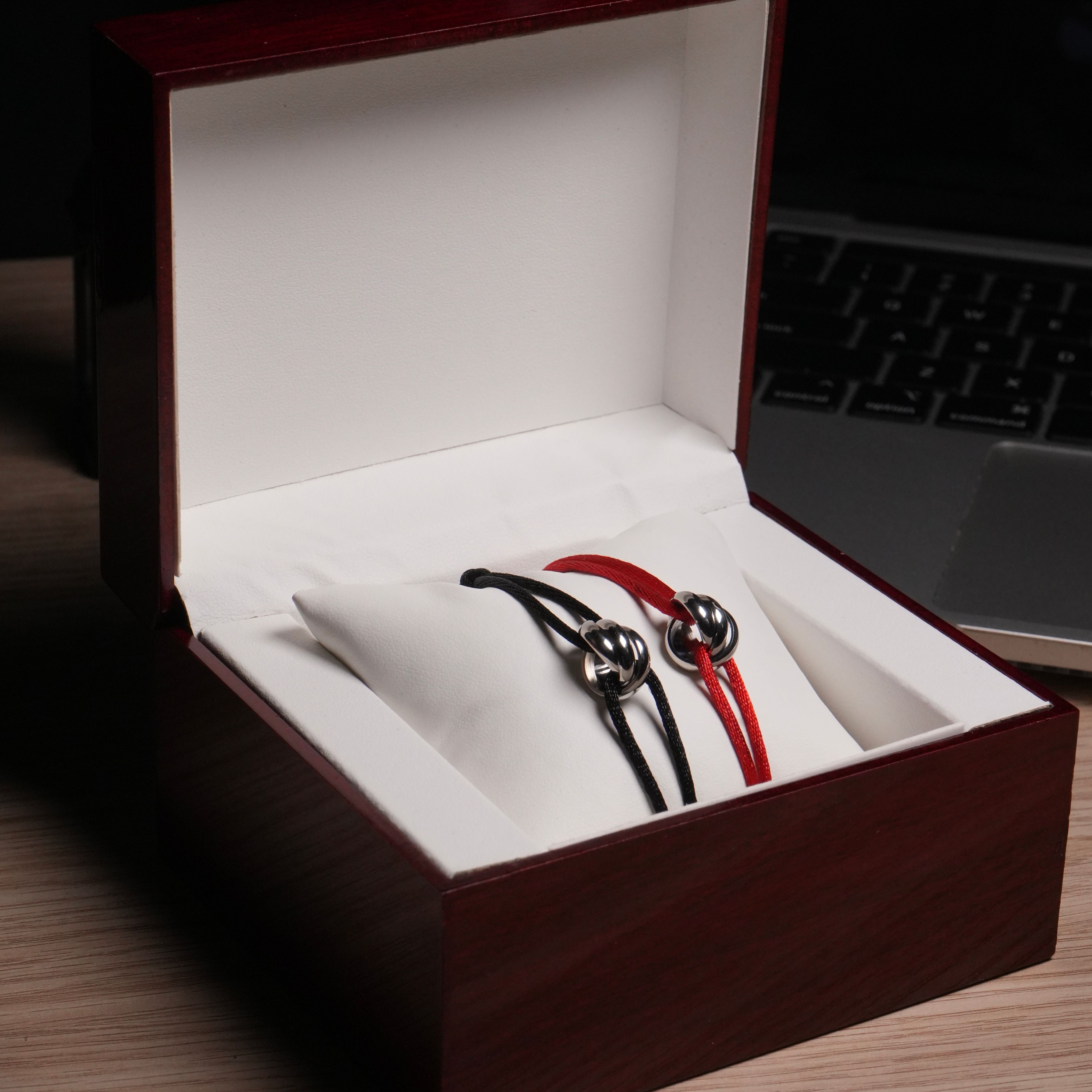 ✨ Duo de bracelets en acier inoxydable avec cordon rouge pour elle et noir pour lui